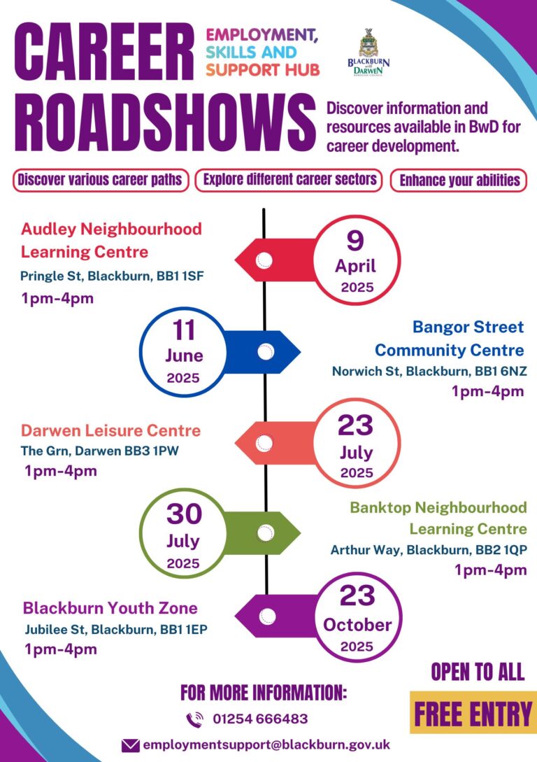 We’re back with the Career Roadshow happening across Blackburn with Darwen! If you’re looking to explore new opportunities, boost your skills, or find your next step — don’t miss this!