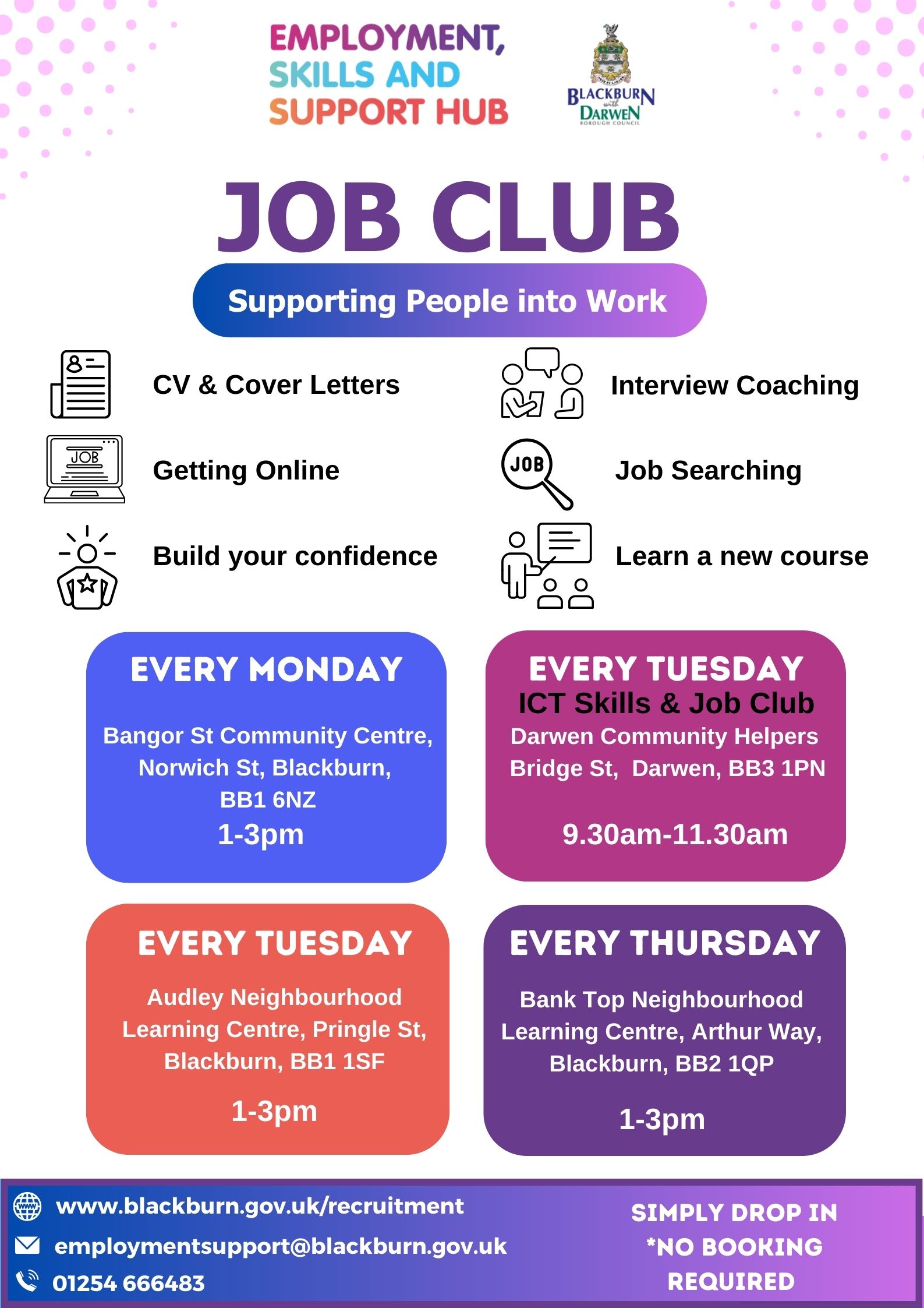 For more information call: 01254 666483 or email: employmentsupport@blackburn.gov.uk